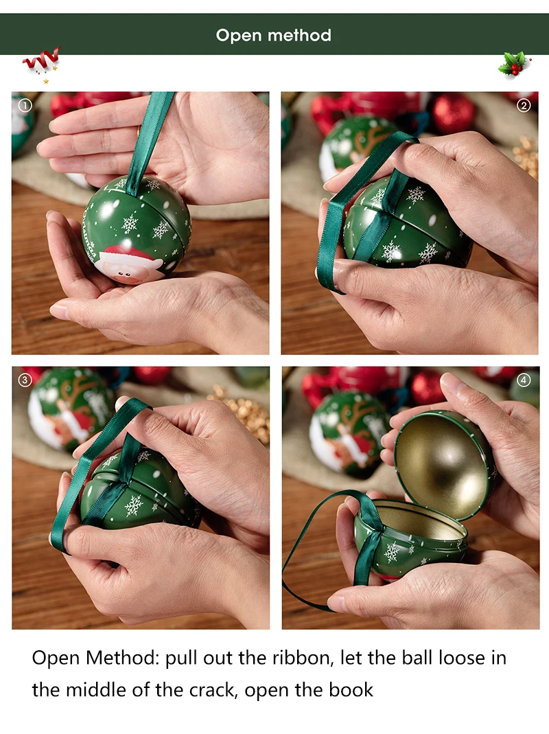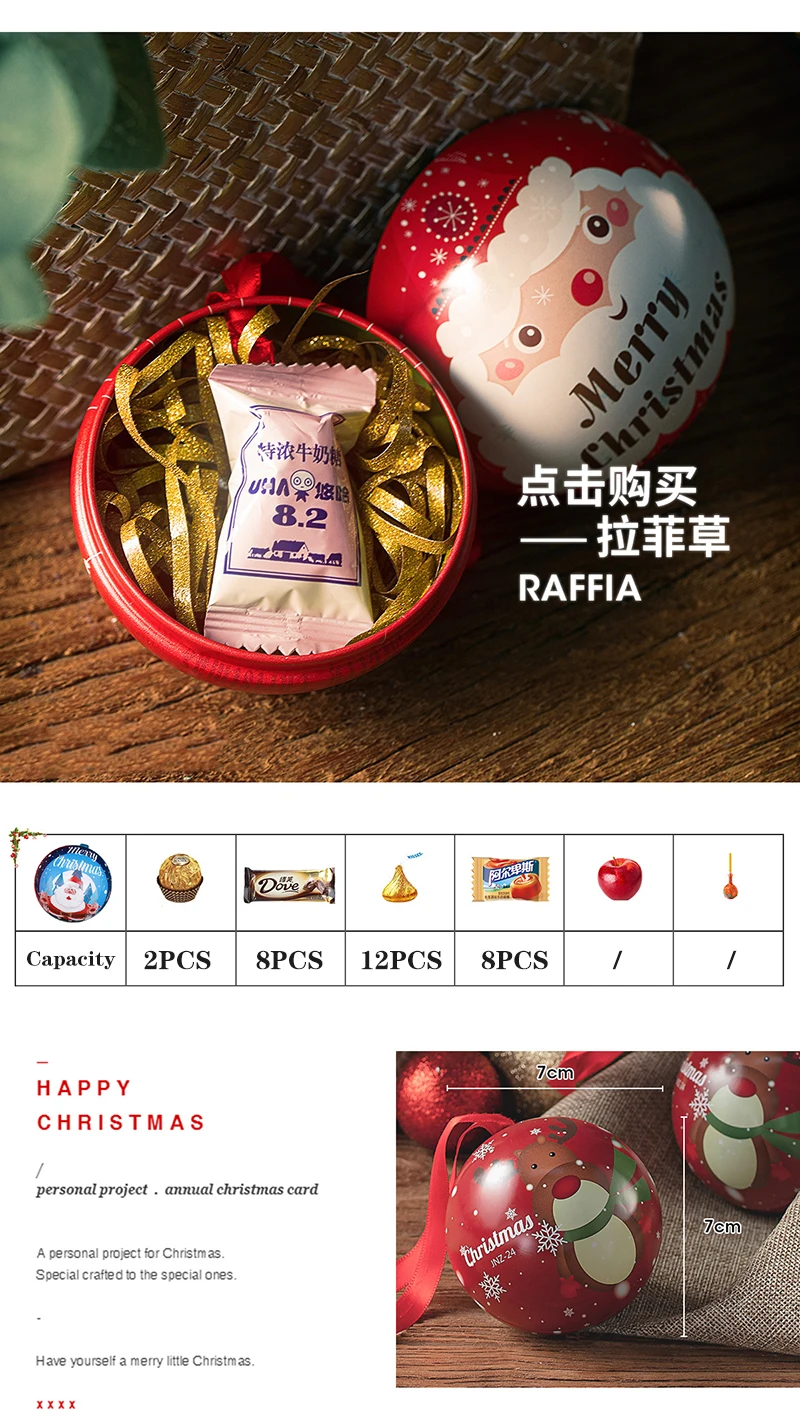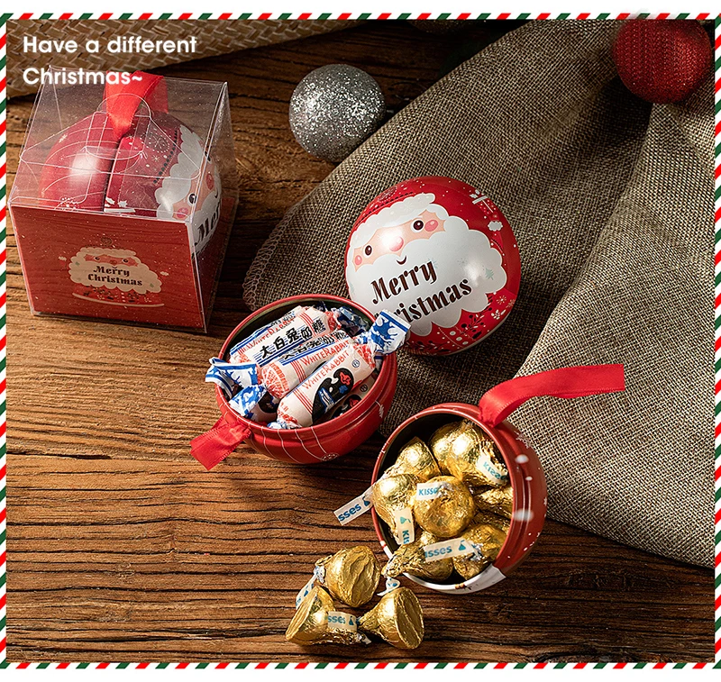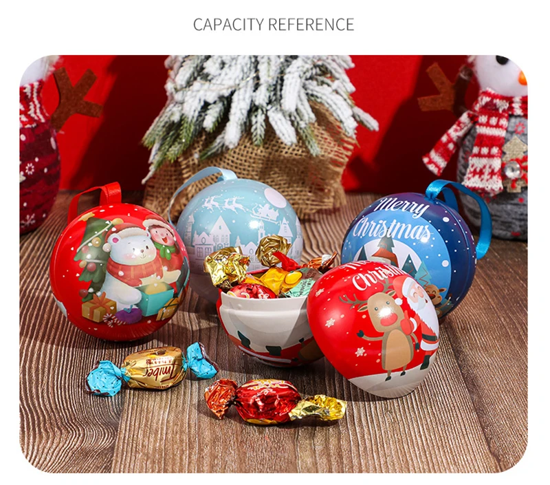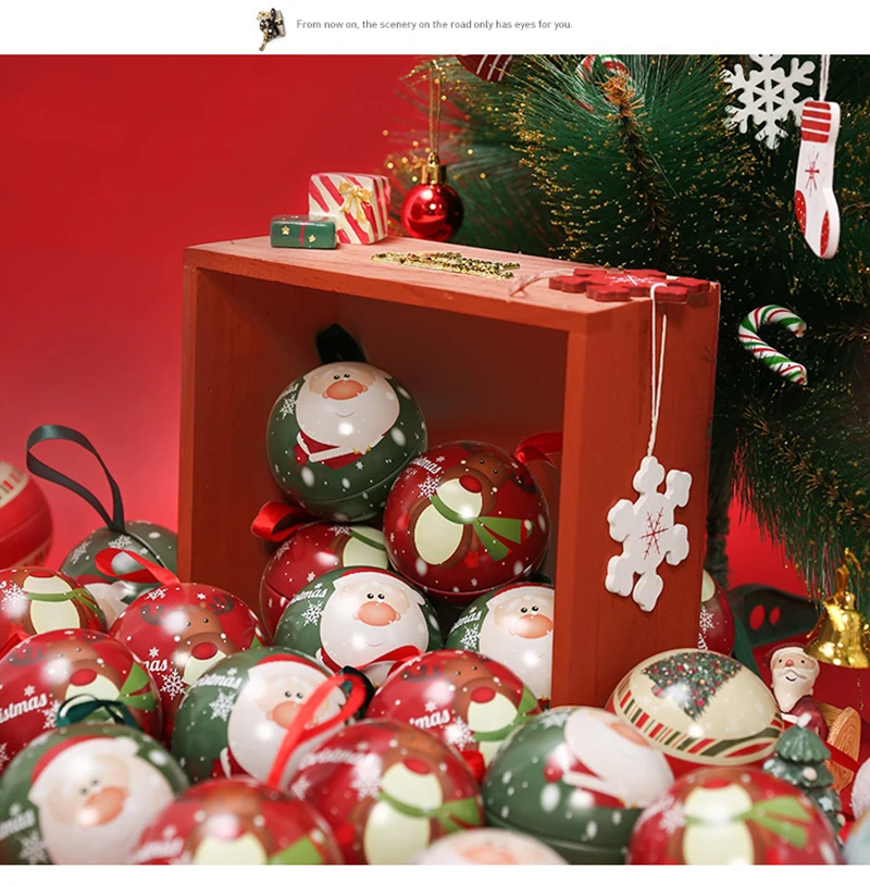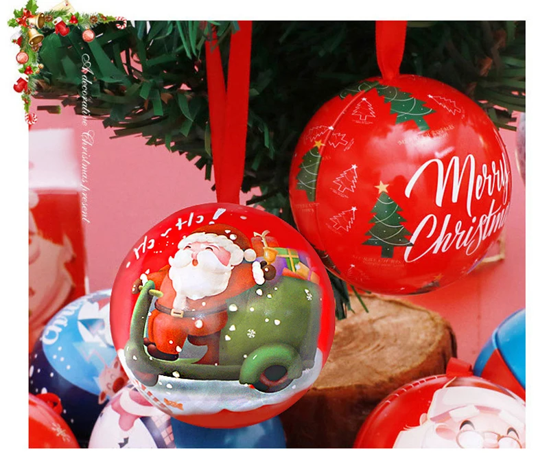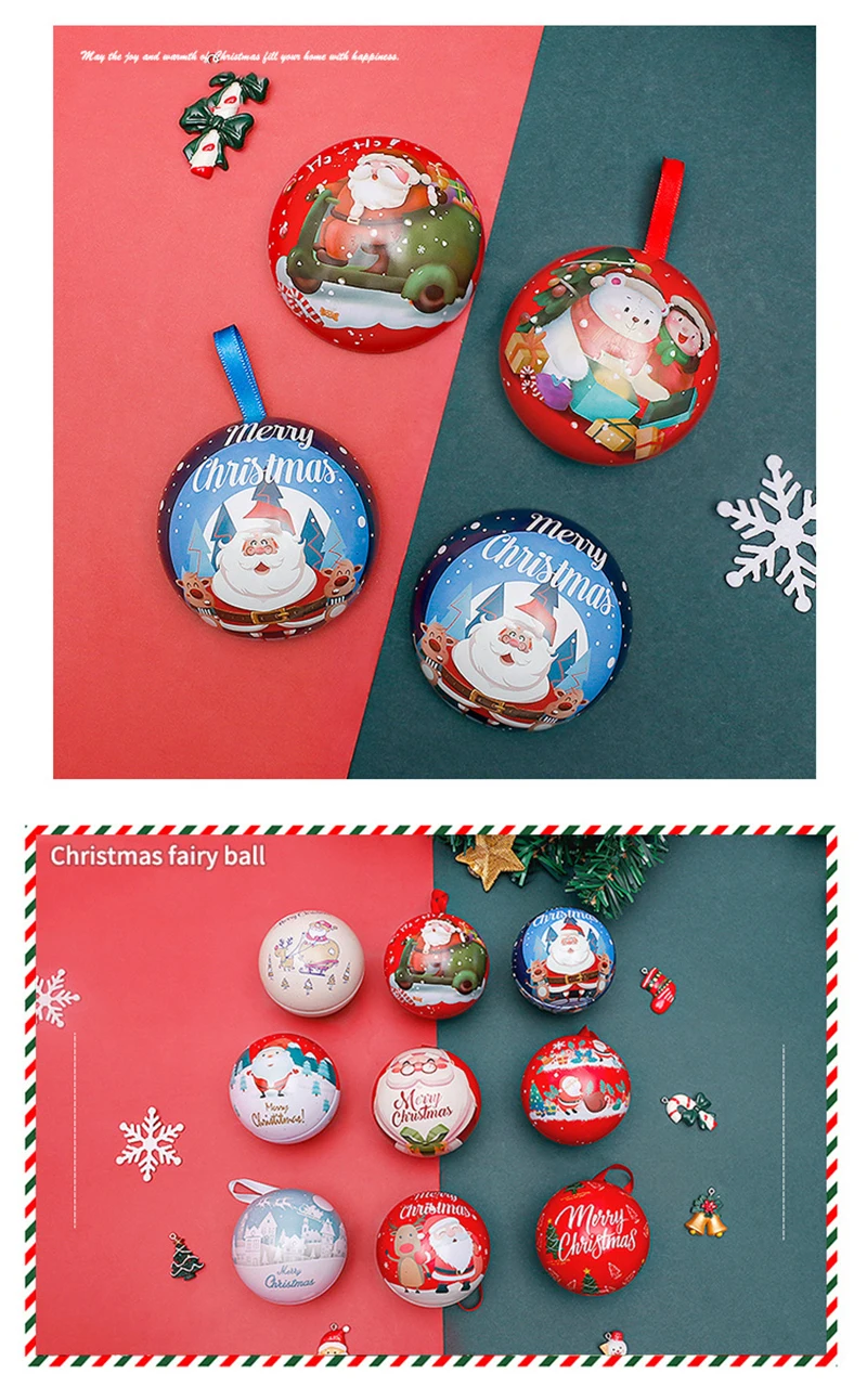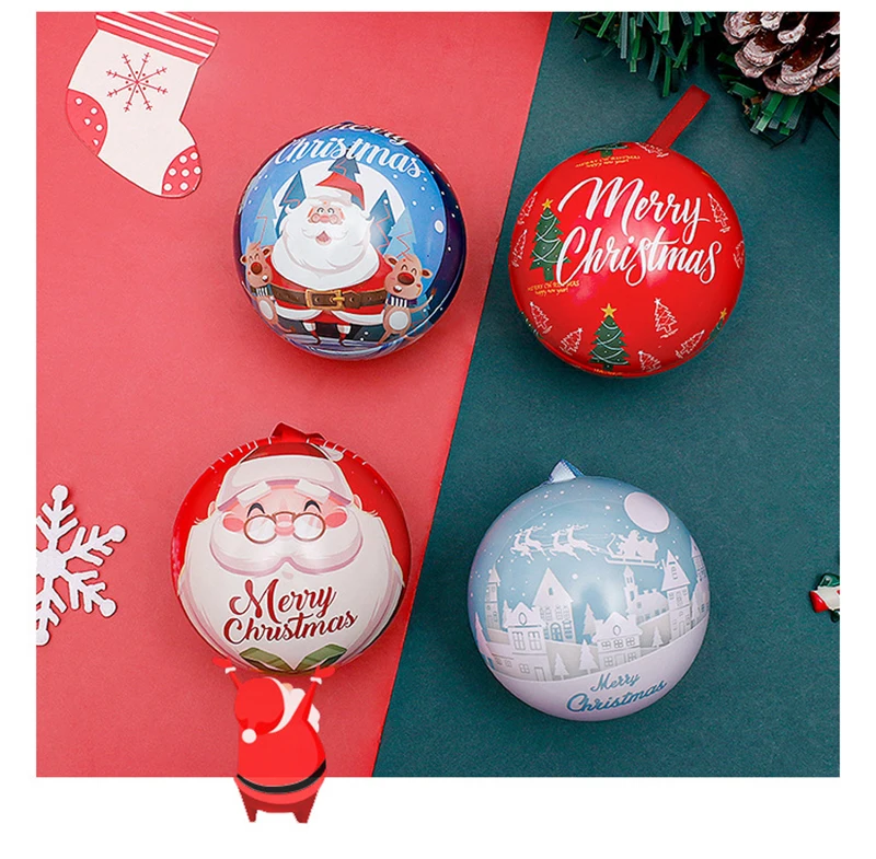 10pcs 7cm Christmas Ball Candy Box Christmas Tree Pendant Tinplate Children Spherical Gift Iron Box New Year Decoration Xmas Eve