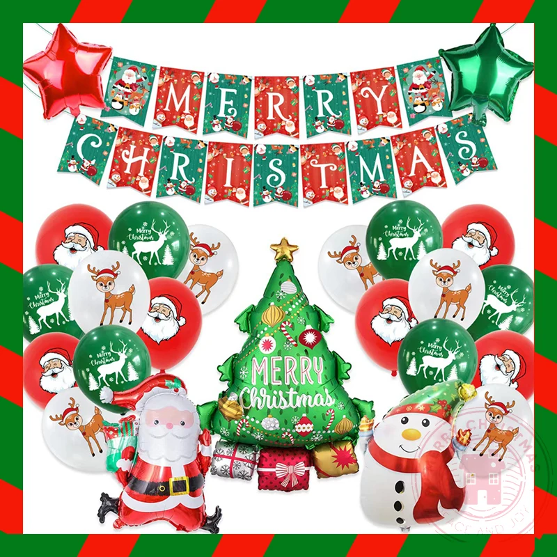 2025 Christmas Decoration Balloons Santa Claus Elk Snowman Pattern Printed Latex Balloon Letter Flag New Year Decorative Balloon