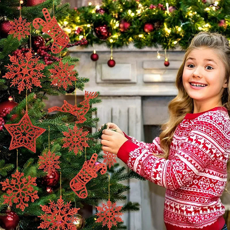 20Pcs Christmas Tree Decoration Hanging Ornaments Tree Snowman Reindeer Santa Snowflake Ornaments for New Year Winter Party