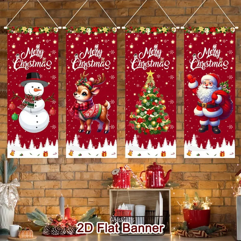 4pcs Christmas Hanging Flag Oranment Christmas Decorations for Home 2025 Xmas Hanging Pendant Navidad Noel Gifts New Year 2026