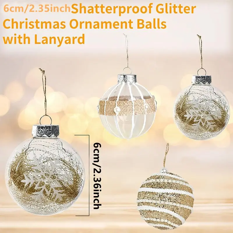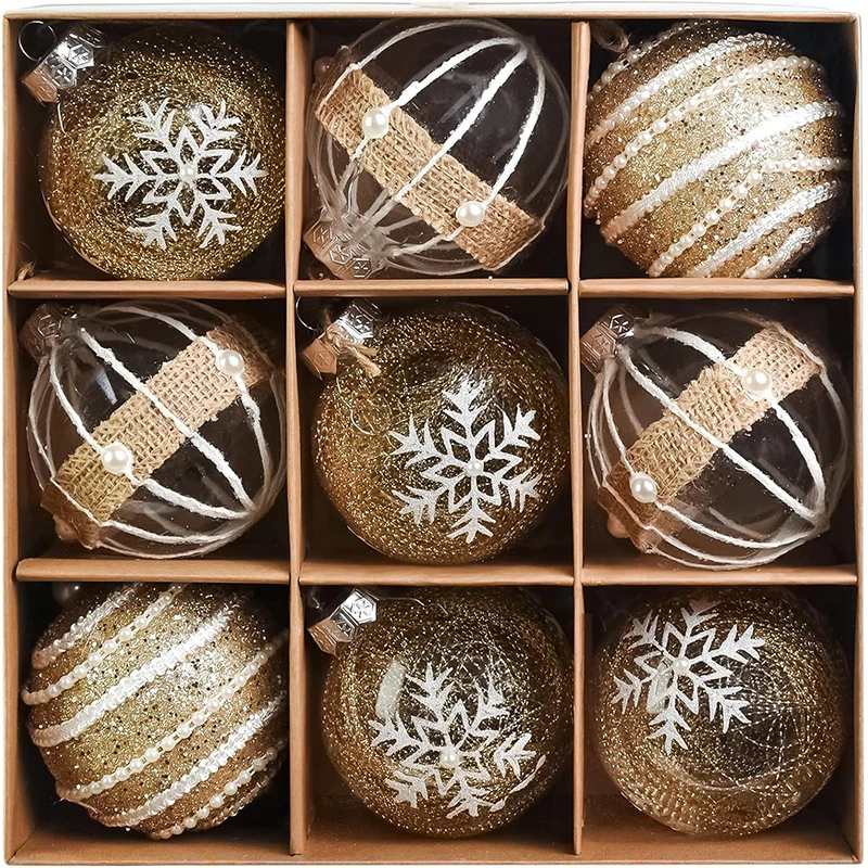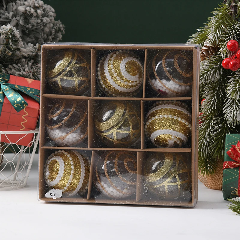 9Pcs 6cm Gold Christmas Ball Decor Suit Shatterproof Flash Hanging Balls for Xmas Tree Decoration Home Party New Year Gifts