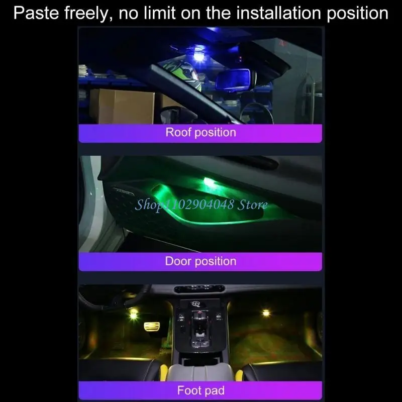 Automotive Roof Light Car Interior Ambient Light Remote Control Adhesive Wireless LED Lights Atmosphere Decoration Lamp