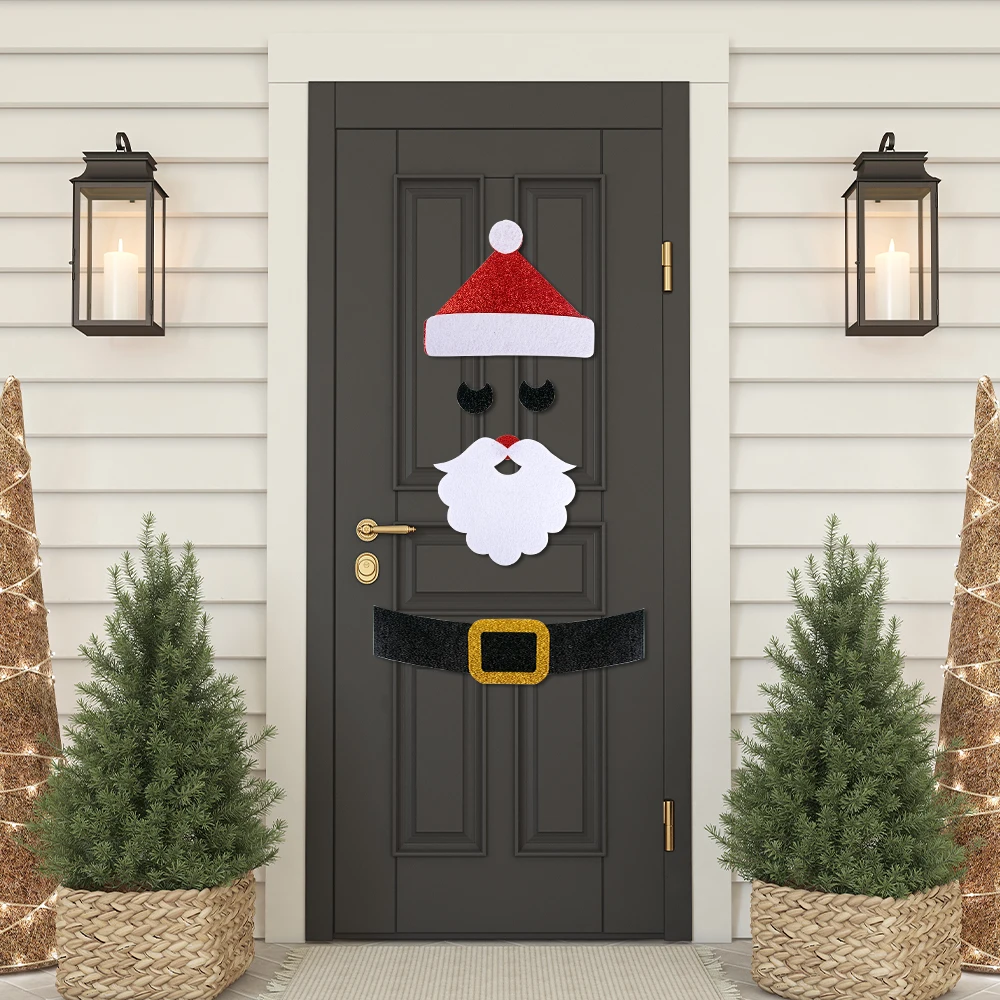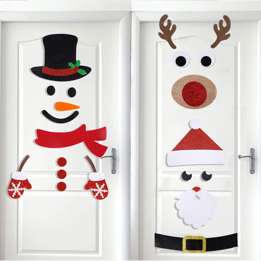Christmas Door Window Stickers Felt Cloth Cartoon Snowman Santa Claus Elk Wall Sticker for Winter Xmas Noel new year Decor Decal