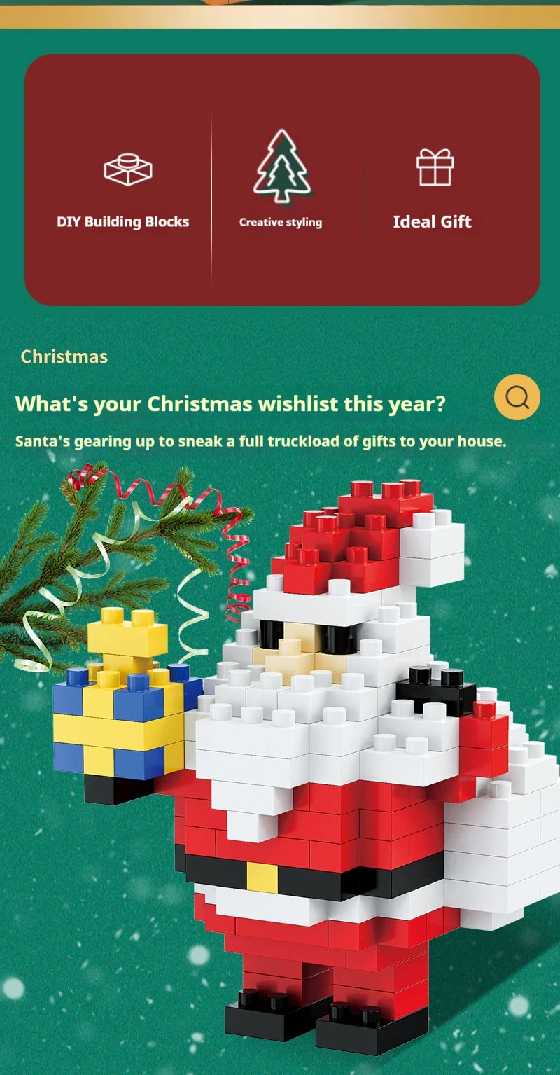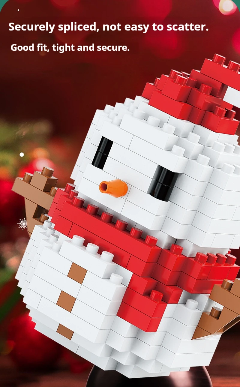 Engage in a fun DIY building block game with Santa Claus and reindeer, perfect for holiday puzzle enthusiasts.