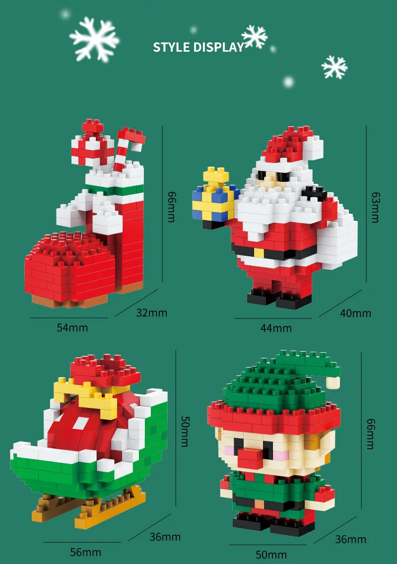 Christmas Gifts Micro Building Block DIY Domino Game Santa Claus Reindeer Holiday Puzzle Assembling Bricks Table Decoration Toys