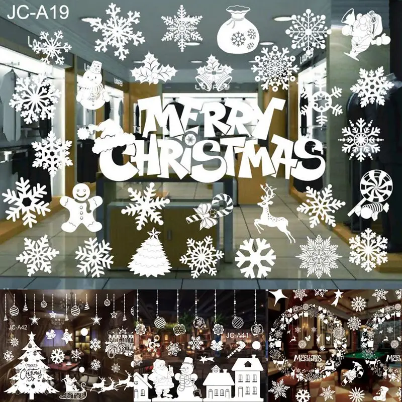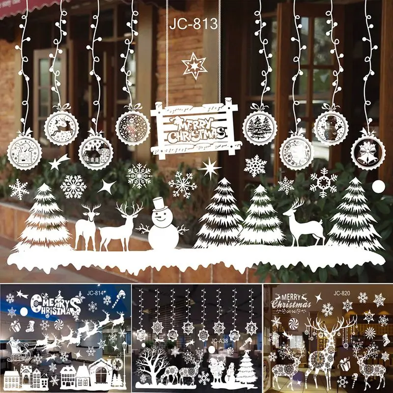 Christmas Window Stickers Merry Christmas Decorations For Home 2024 Christmas Wall Sticker Kids Wall Decals Happy New Year 2025