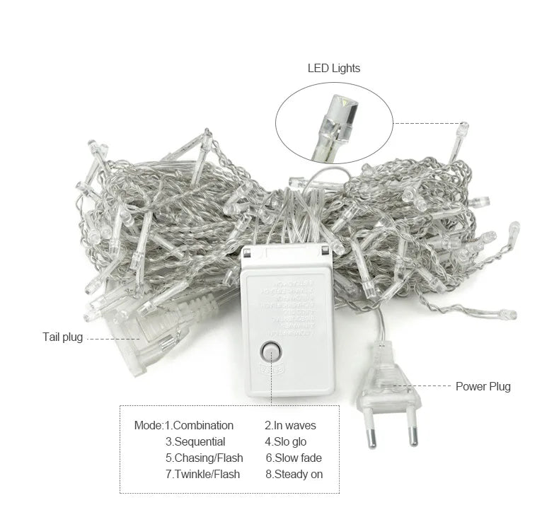 Led Icicle String Lights 4m Street Garland On The House 8 Modes Christmas Lights Outdoor For New Year Christmas Decoration